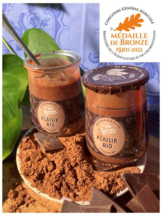 et d'abord Notre Plaisir au chocolat généreux en cacao, peu sucré, bien texturé,un plaisir pour les amateurs de bon chocolat.Il a reçu la Médaille de Bronze au Concours Général Agricole Paris 2022.